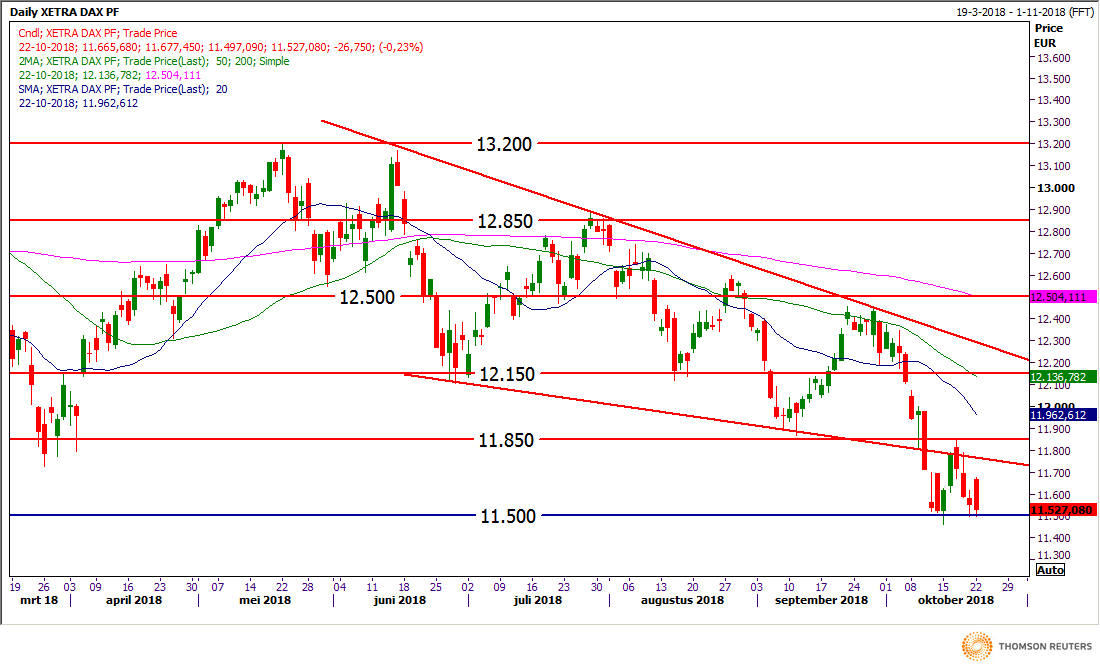 Steun 1: 11.500 — Steun 2: 11.250 — Weerstand 3: 11.000