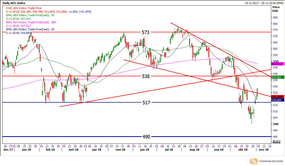 Weerstand 1: 520 – 521 — Weerstand 2: 525 — Weerstand 3: 528
