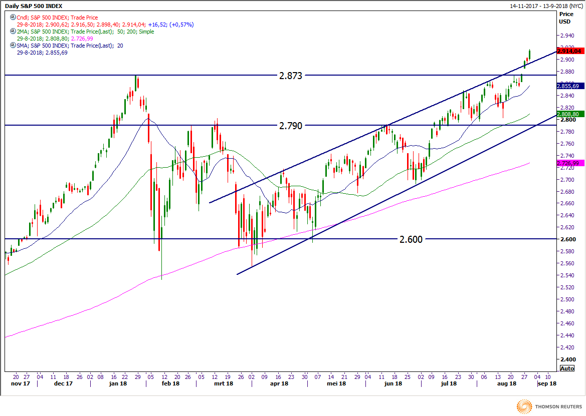De mogelijke deal met Canada rondom het handelsconfict na dat men eerder deze week al met Mexico een deal kon sluiten samen met een koopaanbeveling voor Amazon met doel op $2500 zet de markt nog maar eens een stap hoger, door dat laatste kreeg de Nasdaq nog een stevige duw in de rug. De rest volgde al was dat minder krachtig dan de techsector. We kunnen er natuurlijk vragen over stellen maar het is een feit dat nu ook dit soort berichten de markten in zijn geheel hoger krijgt. Toch viel het op dat de Dow Jones en de Dow Transport niet volop mee doen met het geweld dat we nu bij de technologie zien, er zitten ook niet zoveel tech-aandelen in de Dow Jones maar het is toch weer iets om in de gaten te houden de komende dagen. We zitten al aan record nummer 17 voor de S&P 500 en het 4e op rij, de Nasdaq zet record nummer 28 neer in 2018. Ook de Nasdaq 100 en de Russel 2000 zetten een nieuw record neer.