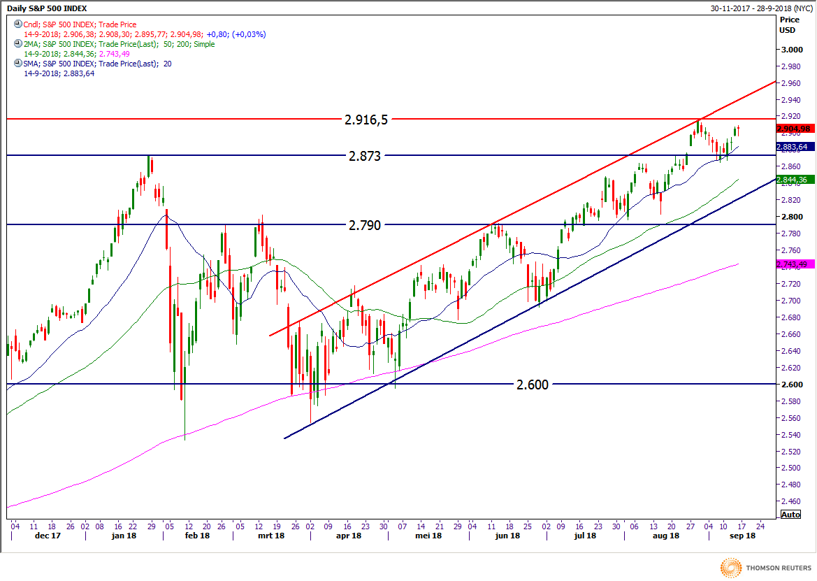 Een opvallend feit vrijdag was dat Trump nog maar eens onderstreepte dat het handelsconflict met China verder zal gaan dan die 200 miljard waar hij eerder mee kwam. De indices moesten daardoor even naar lucht happen maar richting het slot was dat alweer vergeten. Het valt op dat de reactie van de markt op deze berichten steeds milder wordt, aan de andere kant is het zo dat als er goed nieuws komt we een veel scherpere reactie omhoog zien. Ook blijven de sector rotaties opvallend, de afgelopen week hebben we dat meerdere keren waargenomen. Het is nu wachten op de komende dagen, krijgen we nieuwe records op Wall Street? Een spannende beursweek op komst dus …