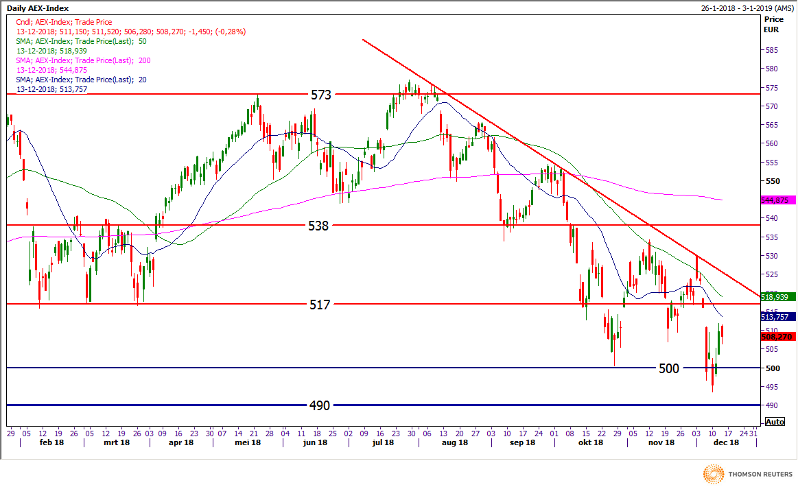 Waar we gisteren een redelijke sessie kregen aan het begin van de dag eindigde alles weer in mineur, alleen de Dow Jones kon zich eraan ontrekken door met een klein plusje te sluiten maar de Nasdaq en de S&P 500 sluiten vlak of met een klein verlies af, alle indices stonden even redelijk hoger tijdens de sessie. Maar het nieuws blijft de gemoederen bezig houden, de kwestie rondom Trump, de feiten rondom China en de VS en natuurlijk ook de onzekerheden rondom de Brexit. Het zijn zaken die we dagelijks kunnen aanhalen als reden voor de forse uitslagen op de beurzen en ik verwacht niet dat het veel zal veranderen op korte termijn. Maar het belangrijkste blijft hoe de aandelenprijzen staan ten opzichte van de economische ontwikkelingen en dan vooral in de VS, nu de kans groot is dat het economisch wat minder goed zal gaan passen de aandelenprijzen zich daarop aan, de koers winst verhoudingen worden anders te hoog terwijl ze dat al waren. Veel beleggers kijken nu vooral uit naar de bedrijfsresultaten over het laatste kwartaal van 2018 en naar het eerste van 2019, en vooral wat men zal melden bij de cijfers in januari.
