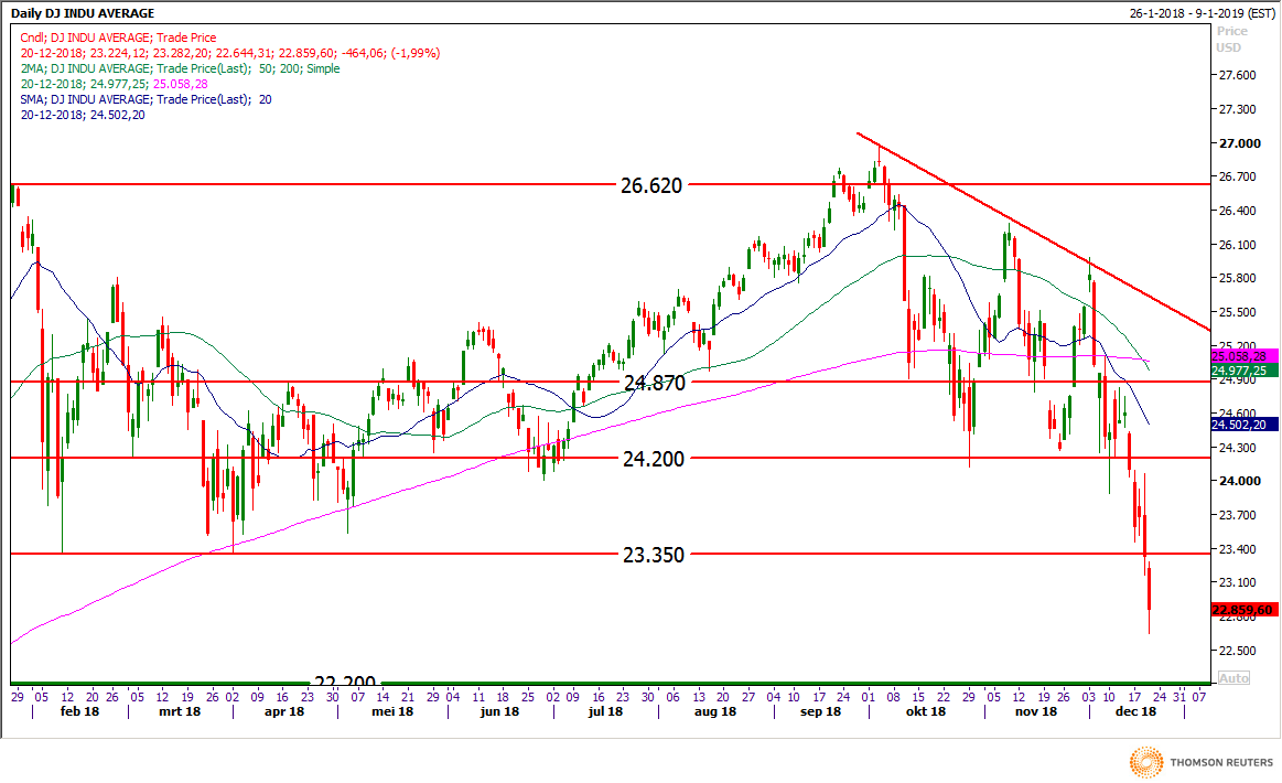 De markten blijven onder druk staan, een poging tot herstel zien we niet eens hier in Europa waardoor de AEX al terugvalt tot rond de 480 punten. Wall Street dat gisteren nabeurs nog een stevige plus kreeg zien we ook zwakjes met lagere futures maar dat is nog wel beter dan de slotstanden van gisteren. Het is zoeken naar mogelijkheden nu, die komen er zeker wel maar we moeten meteen ook opletten voor het gevaar dat de indices nog verder zakken, dat blijft mogelijk en zeker wanneer beleggers die gewend zijn aan stijgende beurzen het niet meer zien zitten. Voor de leden zal ik hier en daar wat proberen te schakelen en mogelijk wat kleine posities opnemen. We bereiden ons vooral voor op 2019, wat zal het nieuwe jaar ons brengen? Denk eraan dat er ook veel aan “Window Dressing” wordt gedaan nu, het klinkt raar maar hoe lager ze dit jaar afsluiten des te beter men in 2019 voor de dag kan komen. Portfolio managers maken daar absoluut gebruik van, hoe lager je bijvoorbeeld Apple kan kopen begin 2019 hoe meer rendement je erop kan halen aan het einde van het jaar. Beetje ingewikkeld verhaal, maar zo gaat dat nu eenmaal, doen ze ook bij een rally (eindejaarsrally), aandelen zo hoog mogelijk zetten om betere rendementen te kunnen presenteren aan de klanten. Het lijkt er nu wel op dat er zoiets gaande is, als we 2018 negatief afsluiten dan maar zo diep mogelijk, dan kan er in 2019 weer een zeer mooi jaar volgen …