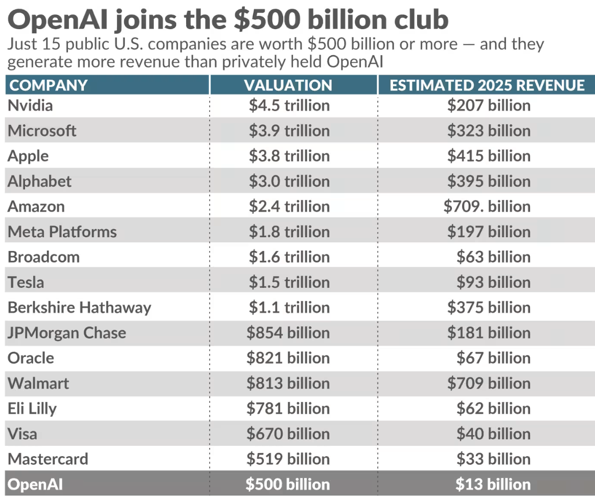 Op Wall Street stegen de indices donderdag ondanks dat de shutdown verder duurt. Wat ook opvalt is dat de waardering van OpenAI opliep tot boven $500 miljard, waardoor het de meest waardevolle startup ter wereld is geworden. Zowel de tech- als de meer traditionele indices, de Nasdaq, de S&P 500 en de Dow Jones bereikten alle 3 een nieuw record.