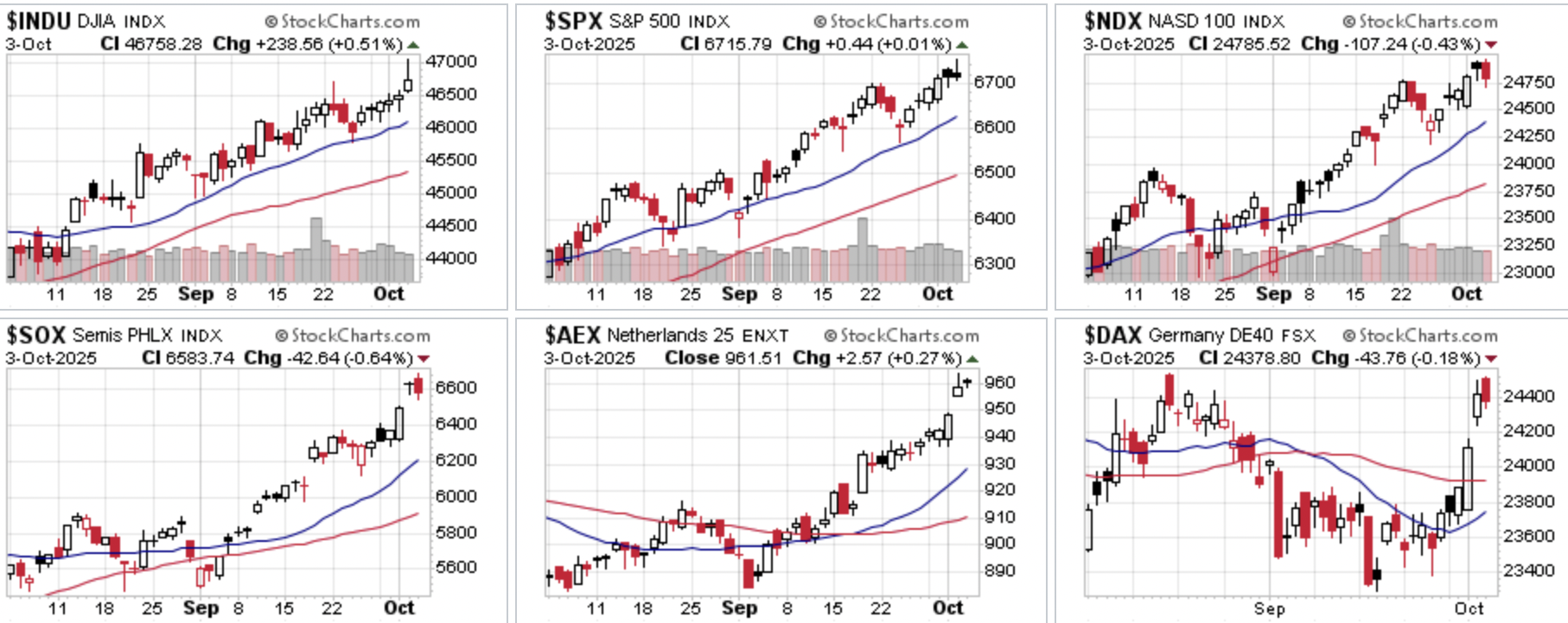 De markten blijven volatiel, Wall Street kan vandaag positief openen te zien via de futures. De rally lijkt wel wat af te zwakken merken we afgelopen vrijdag. De indices wonnen de afgelopen week meer dan 1%, vooral door AI-aandelen, in Europa was de stijging wat groter tussen de 2 en 3%. De impasse in Washington verhoogt de kans op een langdurige shutdown, dat kan verdere onzekerheid veroorzaken. In Japan bereikte de Nikkei een record, het goud en de bitcoin bereikten ook nieuwe records door zorgen over overheidsfinanciën. De term ‘debasement trade’ in goud en bitcoin wordt steeds meer populair als veilige haven.