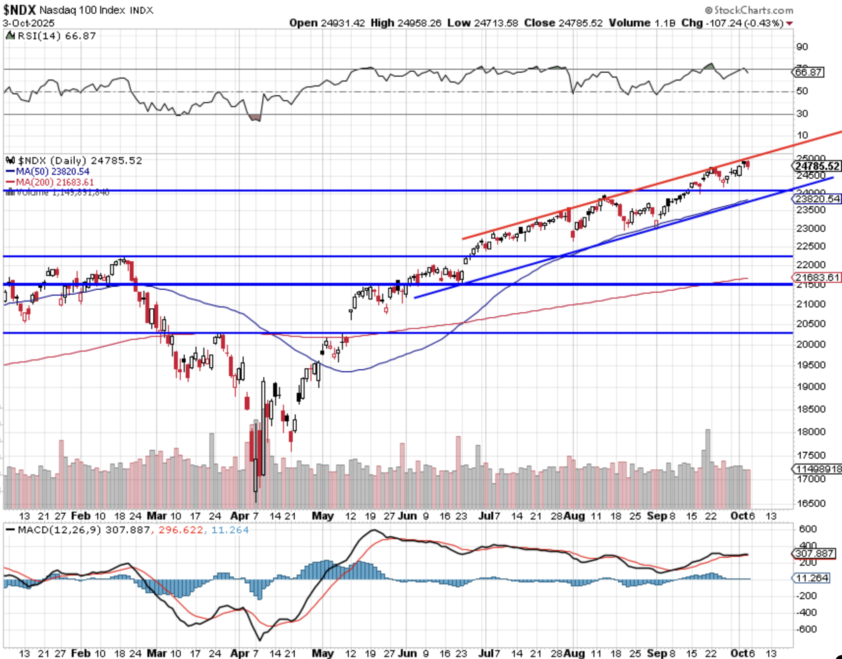 - Pas als de Nasdaq 100 onder de 23.850 punten terechtkomt, ziet het er snel minder goed uit, dan zakt de index onder het 50-MA