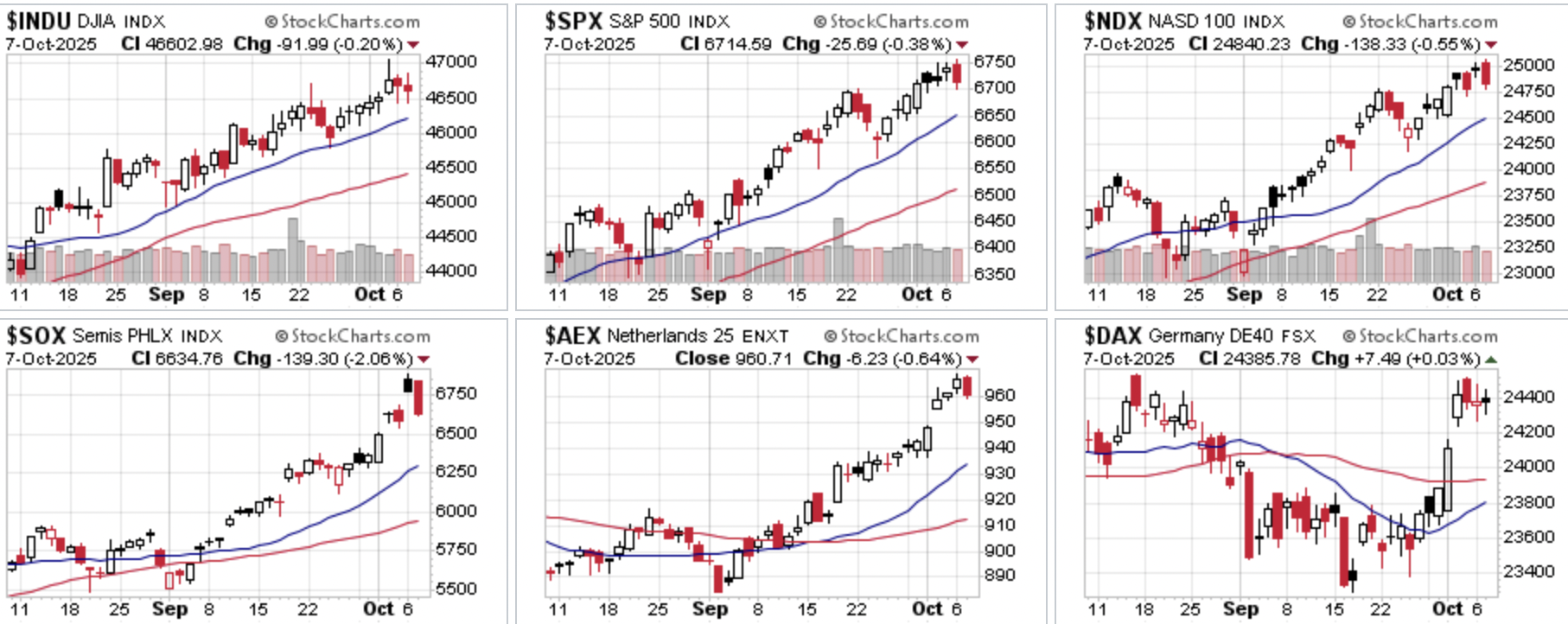 De markten blijven gespannen, met Wall Street dat via de futures een vlakke opening aangeeft na een lichte daling van dinsdag. Dn afwezigheid van belangrijke economische data door de Amerikaanse shutdown blijft voor de Fed en de rente een moeilijke fase. Beleggers wachten nu vooral op de kwartaalcijfers en letten op de overwaardering van meerdere sectoren. Bedrijfsresultaten variëren, met grote winsten voor Trilogy Metals en de luxemerken, terwijl tech-aandelen nu wat onder druk staan. Europa lag er wat verdeeld bij dinsdag, de politieke onzekerheid en inflatie zorgen voor de nodige volatiliteit. De komende weken zullen de markten onzeker blijven verwacht men.