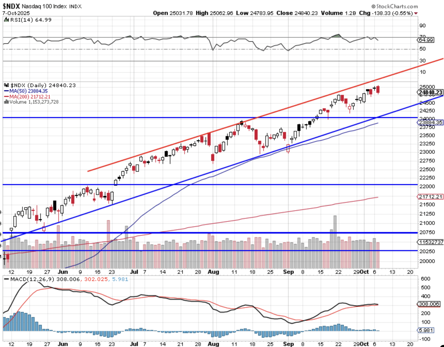- Pas als de Nasdaq 100 onder de 23.900 punten terechtkomt, ziet het er snel minder goed uit, dan zakt de index onder het 50-MA