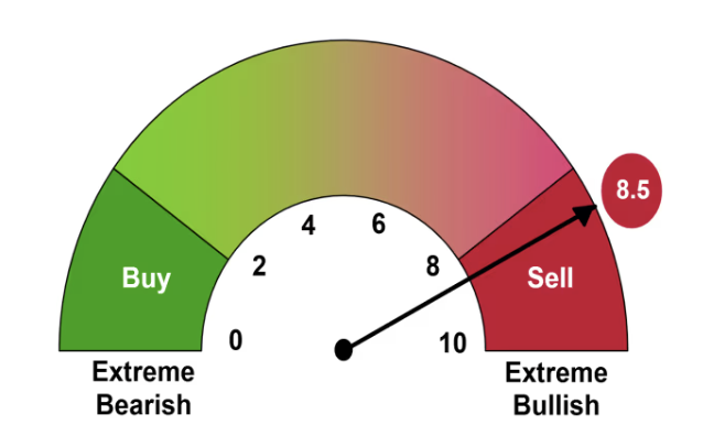 De kern van dit verhaal blijft zoals altijd verrassend menselijk, als bijna iedereen bullish is, gaat Bank of America de contrarian-bel rinkelen. De Bull & Bear Indicator, een meter met een schaal van 0‑tot‑10 die sentiment, positionering en flows bundelt, is verder opgelopen van 7,9 naar 8,5 en kruipt daarmee in de zone die de beurs strategen simpelweg “sell” noemen.