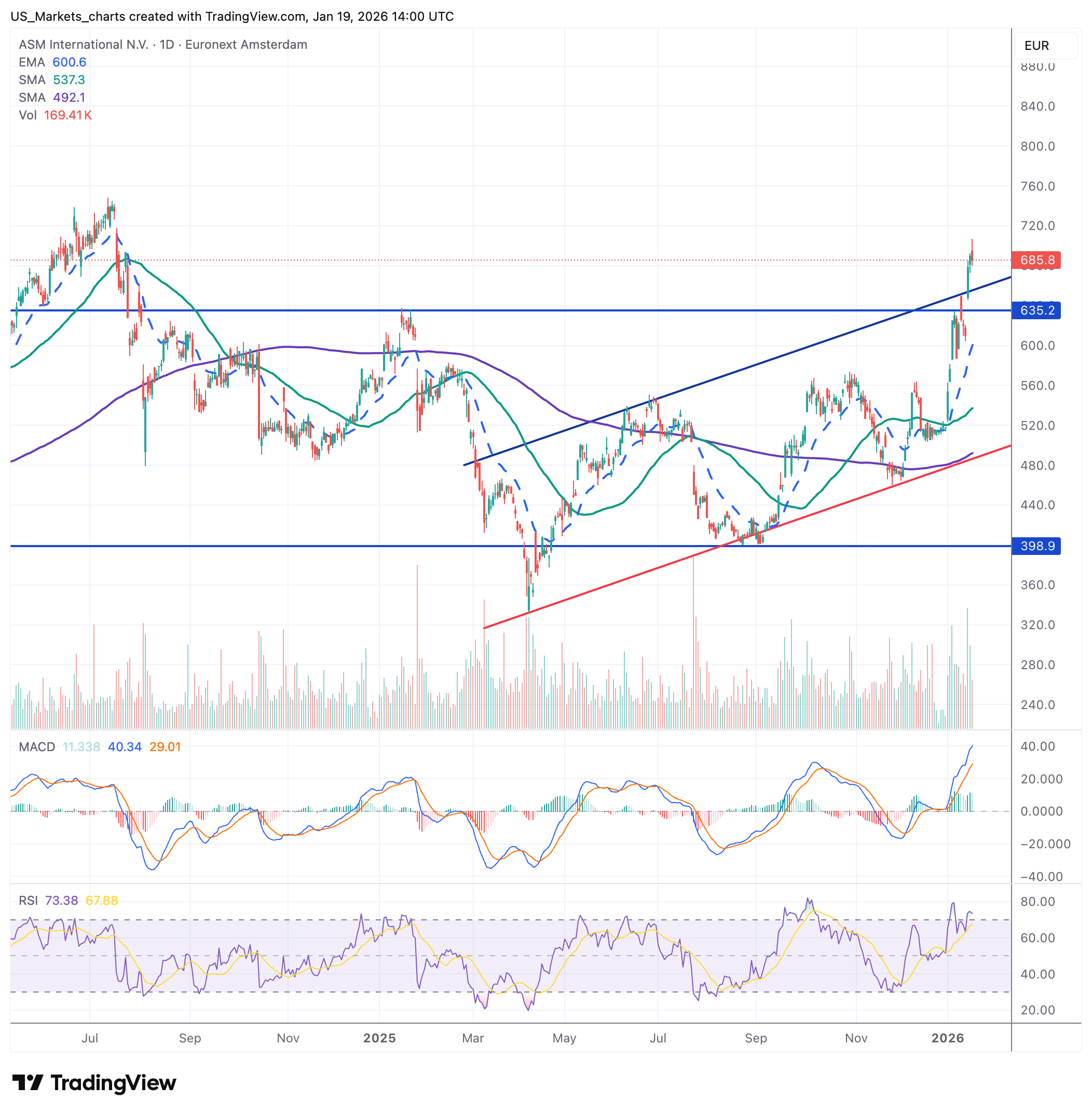 Niet alles is kommer en kwel want chipmachinemaker ASM International (ASMI) publiceerde sterke resultaten die de verwachtingen overtroffen. Het Nederlands-Amerikaanse bedrijf, gespecialiseerd in depositie apparatuur voor halfgeleiders, profiteert van een aanhoudende vraag naar geavanceerde chips. Ondanks de algemene neergang op de Europese beurzen hield ASMI eerst nog stand en klom wat hoger, na de middag duikt ook ASMI in het rood.