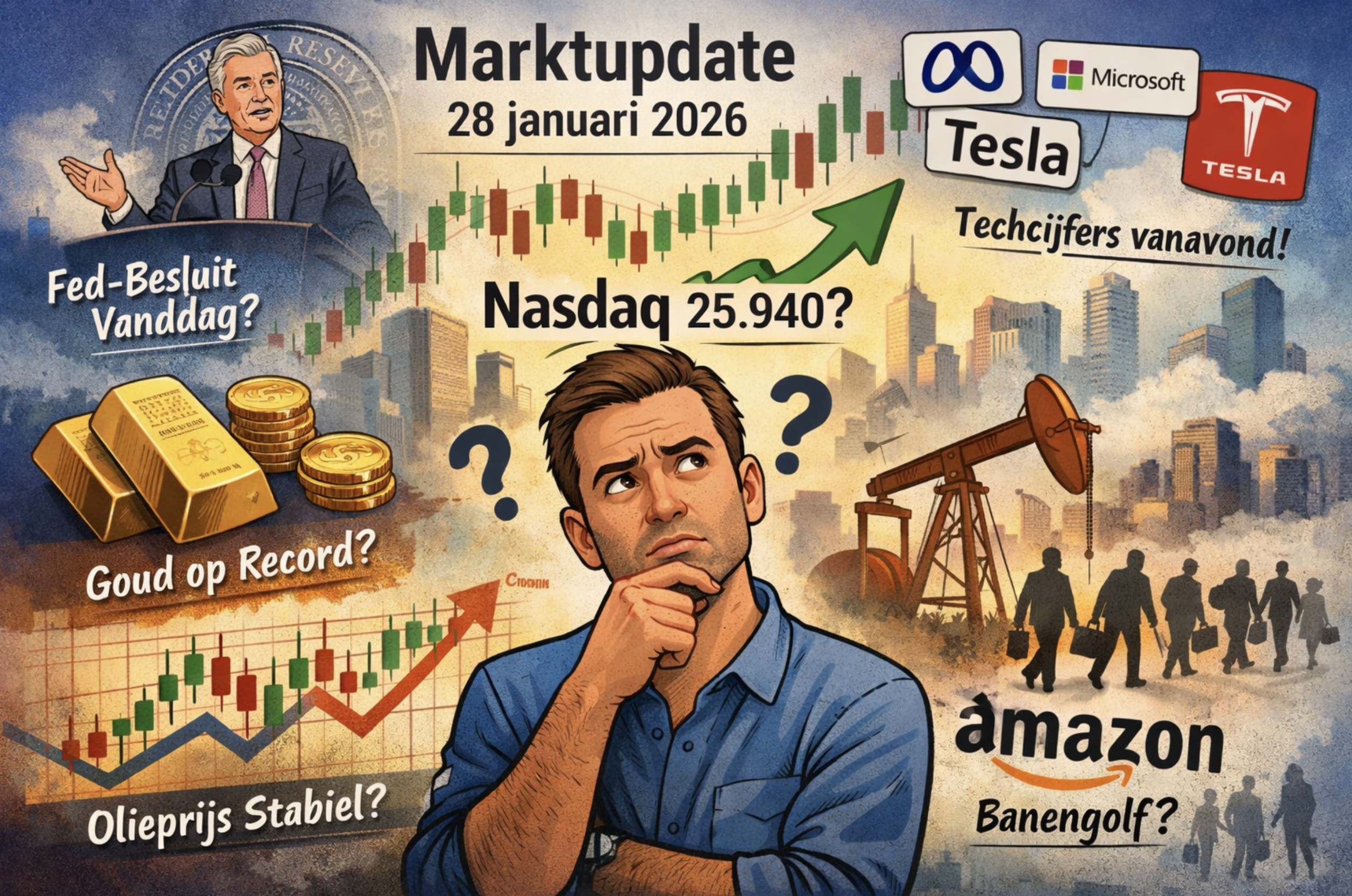Vandaag bevindt de markt zich in een fascinerende spagaat. Terwijl de S&P 500 en de Nasdaq gisteren nieuwe records neerzetten, groeit onder de oppervlakte de nervositeit. Met het rentebesluit van de Federal Reserve en een lawine aan cijfers van techreuzen als Microsoft, Meta en Tesla op de agenda, maken beleggers zich op voor een dag vol volatiliteit.