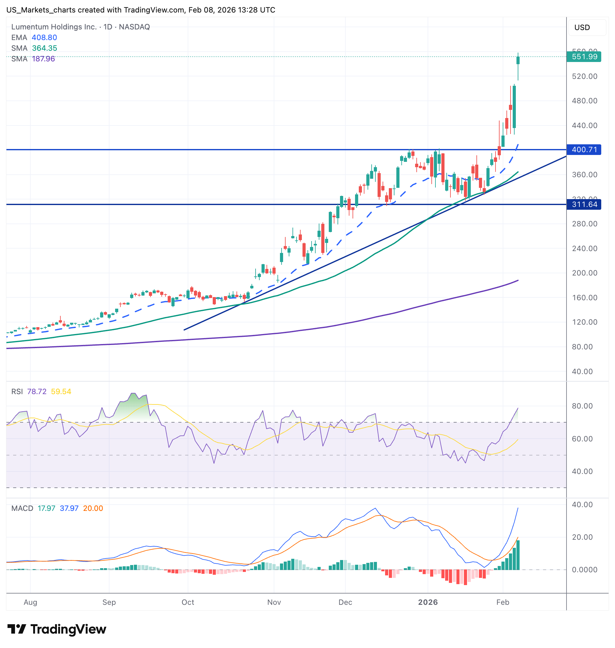Te midden van al deze marktturbulentie was er via 'Guy Systeem Trading' een mooie trade op het aandeel Lumentum Holdings (LITE). Het aandeel werd op 12 januari aangekocht op 330 dollar en werd vrijdag verkocht op de vooraf aangegeven, en hoge, limiet van 550 dollar. Dat is een rendement van ruim 65% op één positie. LITE profiteerde enorm van de AI-infrastructuurhausse omdat het bedrijf is een sleutelspeler in optische componenten voor datacenters en het zag de omzet met 58% stijgen op jaarbasis.