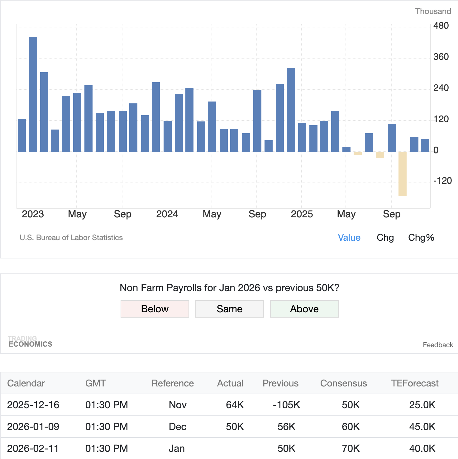Alle ogen zijn vandaag gericht op het Amerikaanse banenrapport van januari, dat om 14:30 uur Nederlandse tijd verschijnt. Dit rapport was uitgesteld door de recente korte government shutdown en is daardoor extra beladen. De verwachtingen zijn bescheiden: economen rekenen op slechts 55.000 tot 70.000 nieuwe banen, een flinke vertraging ten opzichte van voorgaande maanden. De werkloosheid wordt rond de 4,4% verwacht en de loongroei op 3,6% jaar-op-jaar.