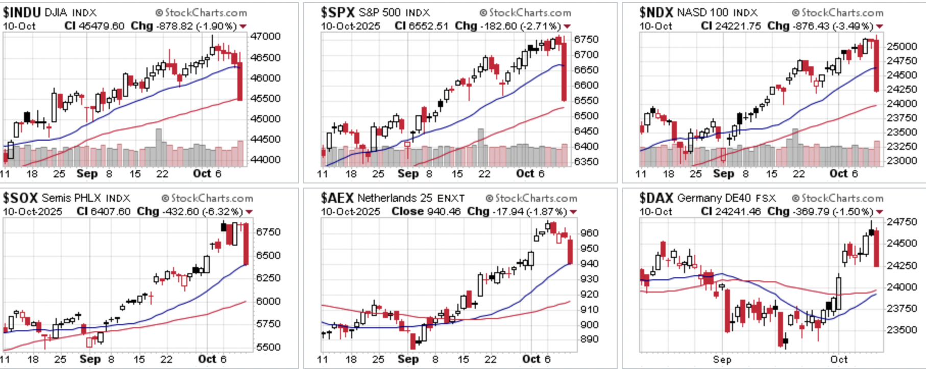 Vrijdag sloten de Europese beurzen lager na felle uitlatingen van Trump richting China over exportbeperkingen van zeldzame grondstoffen en mogelijke importheffingen. Trump liet weten dat hij mogelijk geen ontmoeting meer wil met Xi Jinping tijdens de APEC-top in Zuid-Korea.
