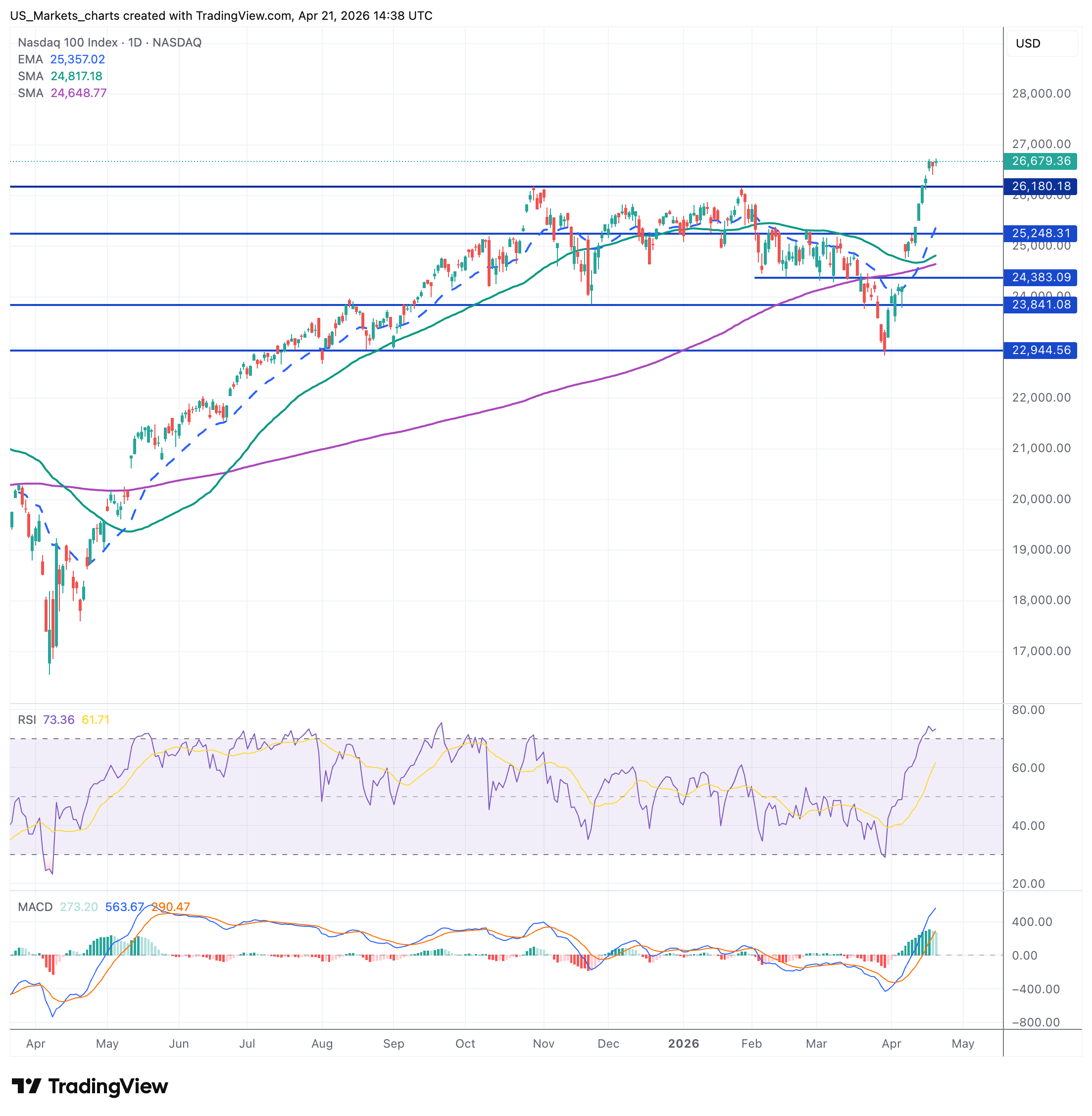 Lees verder »Na een recordrally van bijna 3.850 punten op de Nasdaq 100 in slechts 13 sessies, nemen beleggers vandaag wat gas terug. De aanleiding ligt wederom in het Midden-Oosten: een weekend vol verrassende wendingen rond Iran bracht de broze wapenstilstand opnieuw onder druk. Olie schoot met 5% omhoog, goud leverde 1% in en de futures op de drie grote Amerikaanse indices noteren wat lager. De toon voor de week is gezet, en die lijkt al een stuk voorzichtiger dan die van vrijdag.