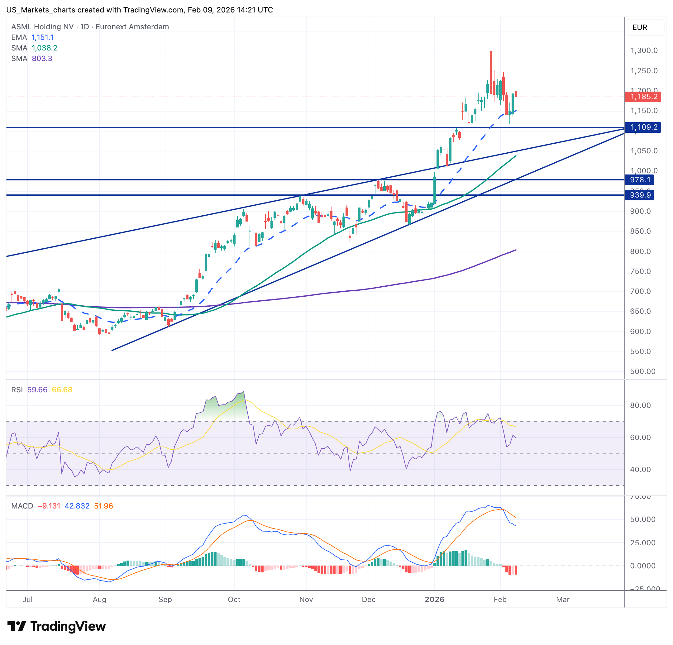 In Europa hield de DAX relatief goed stand gisteren met een beperkt verlies en vandaag zien we een herstel met zo'n 0,65%. Dat is opmerkelijk gezien de chaos aan de andere kant van de oceaan. Toch voelde je ook in Europa de nervositeit wat toenemen, en dat met name bij de technologiewaarden als ASML, Infineon, SAP en Siemens die alle drie door de technologie selloff gedurende enkele dagen ook verloren.