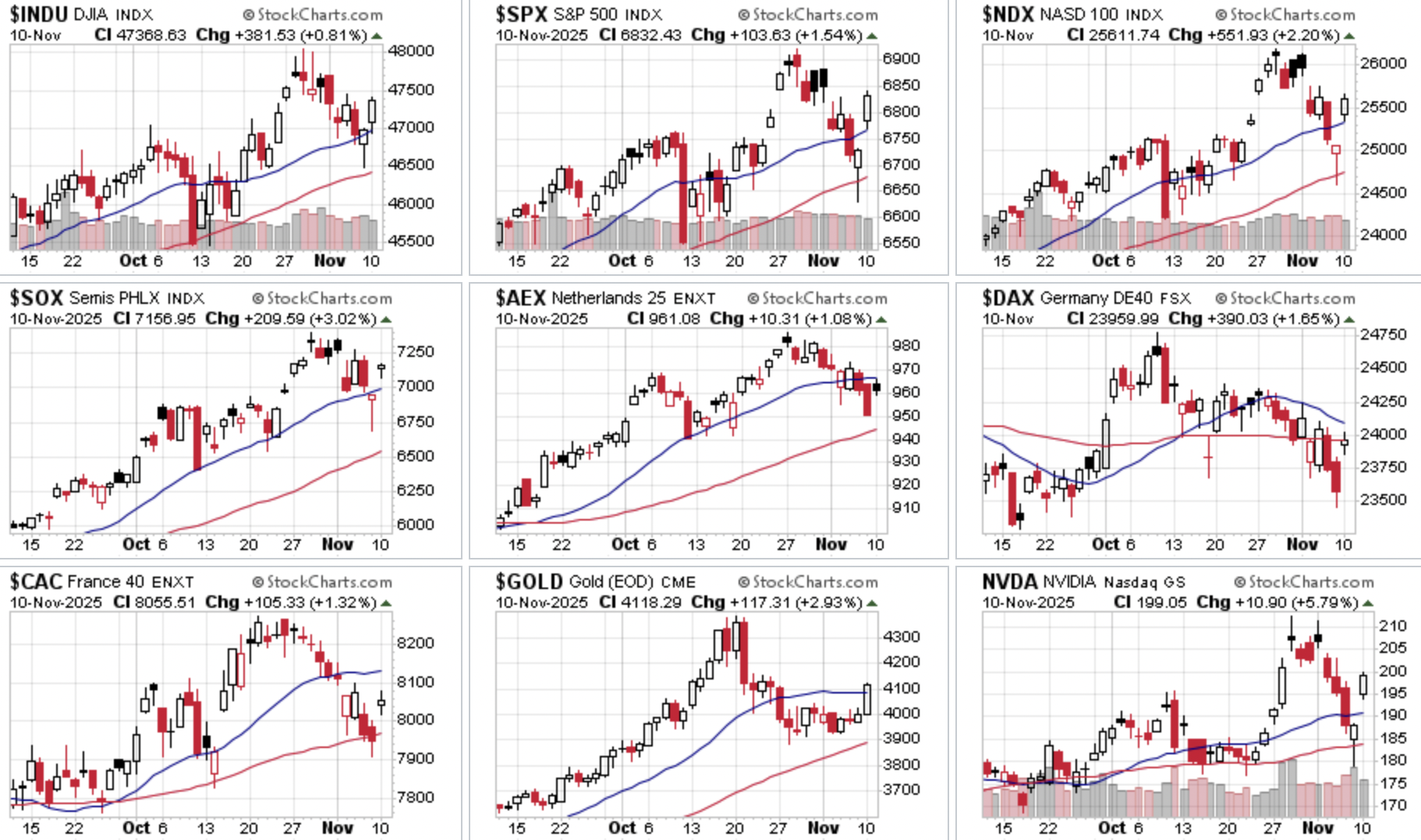 - Sterk positief: $INDU, $SPX, $NDX, NVDA, $GOLD