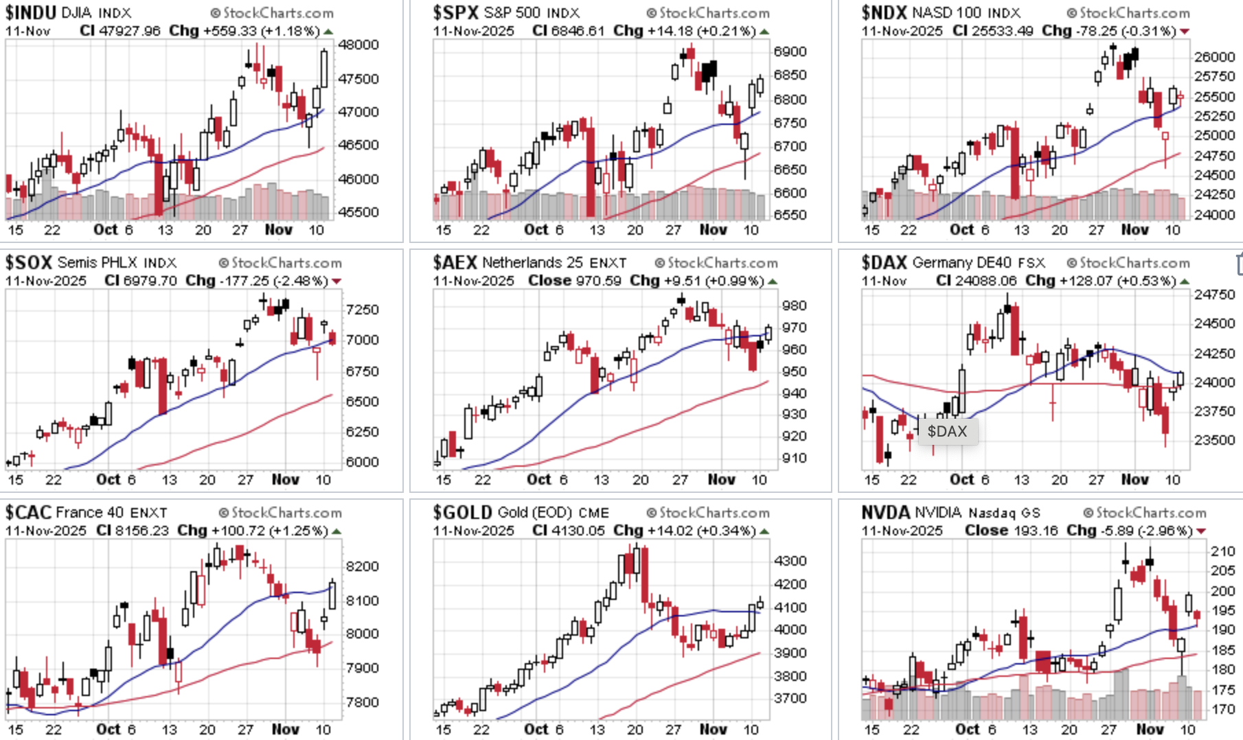 De markten blijven in beweging en tonen opnieuw hun grillige karakter. Terwijl op Wall Street de Dow Jones de toon zette met een nieuw record, zagen we bij de tech- en AI-aandelen juist wat winstnemingen. In Europa was het sentiment opvallend positief met brede stijgingen in vrijwel alle hoofdindices. Beleggers verschuiven hun aandacht steeds meer naar defensieve waarden, terwijl de onzekerheid rond de Amerikaanse overheidssluiting en de rentevooruitzichten nog altijd het sentiment bepalen.