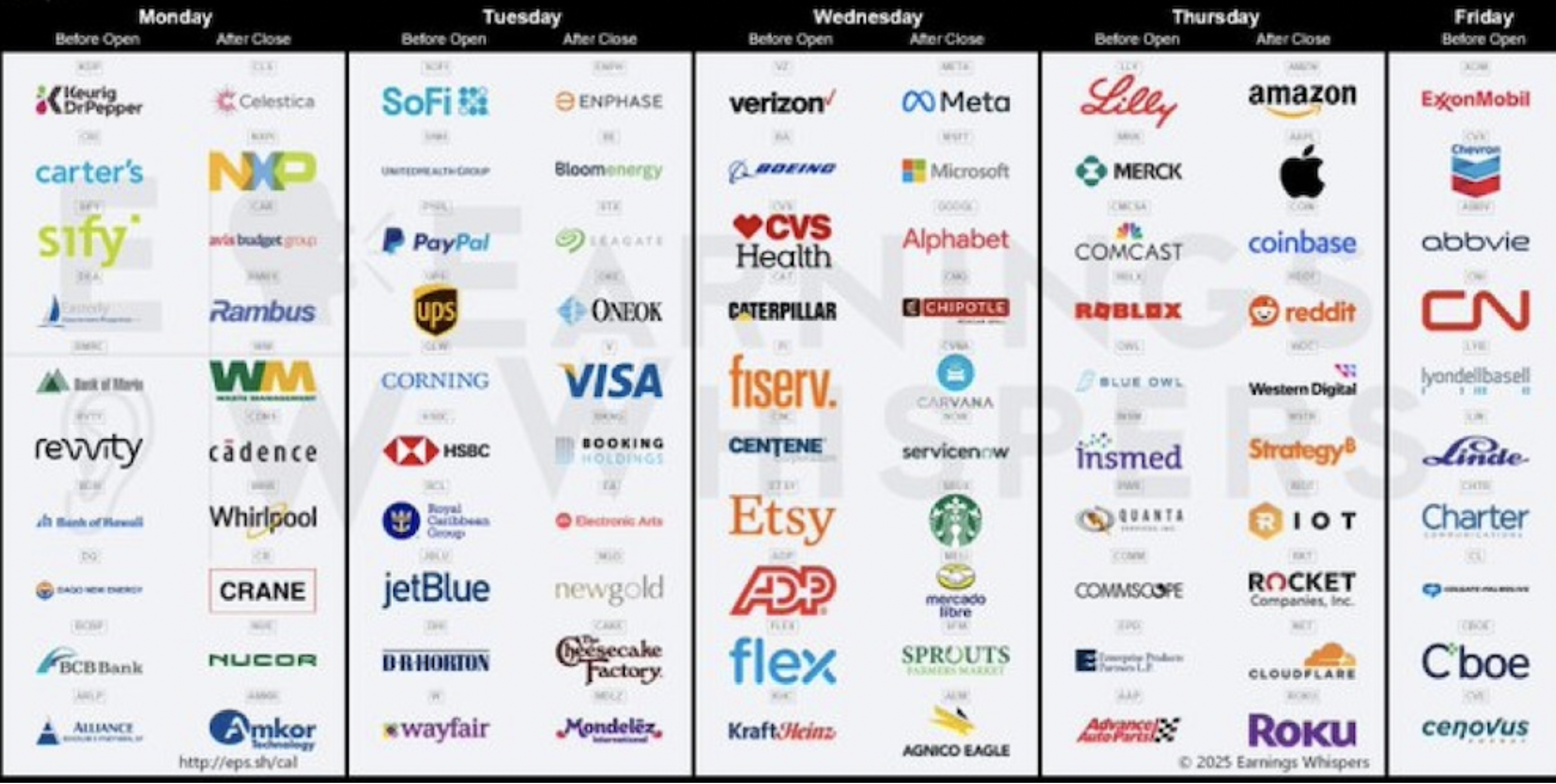 Deze week komen er ook een heleboel belangrijke kwartaalcijfers van onder meer Apple, Amazon, Alphabet, Meta, Microsoft, ExxonMobil en Chevron waarmee zowel de Amerikaanse techsector als de Europese industrie en energiebedrijven de toon zetten voor het marktsentiment.