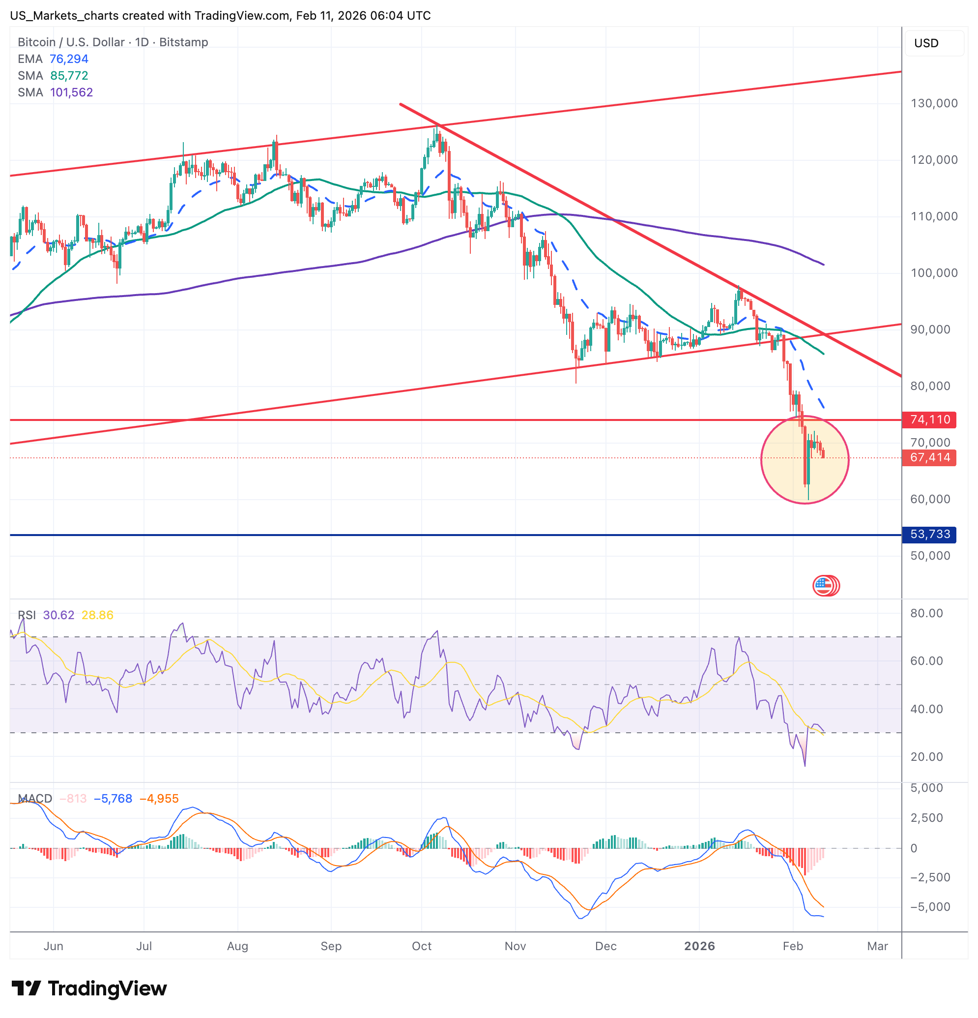 Bitcoin verloor dinsdag opnieuw en staat nu circa $67.500 na een volatiele week met eerst een stevige daling en daarna een stevig herstel. De cryptomunt blijft negatief gericht en kon het herstel niet doorzetten. Het institutionele geld stroomt nog steeds binnen via de bekende ETF's, maar de retail beleggers blijven afwachtend.