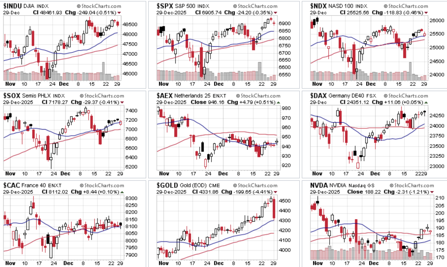 Europa bleef dicht vrijdag door 2e Kerst. De markttechnische situatie toont nu wat consolidatie rond het einde van het jaar, met steunniveaus niet ver weg van recente toppen.