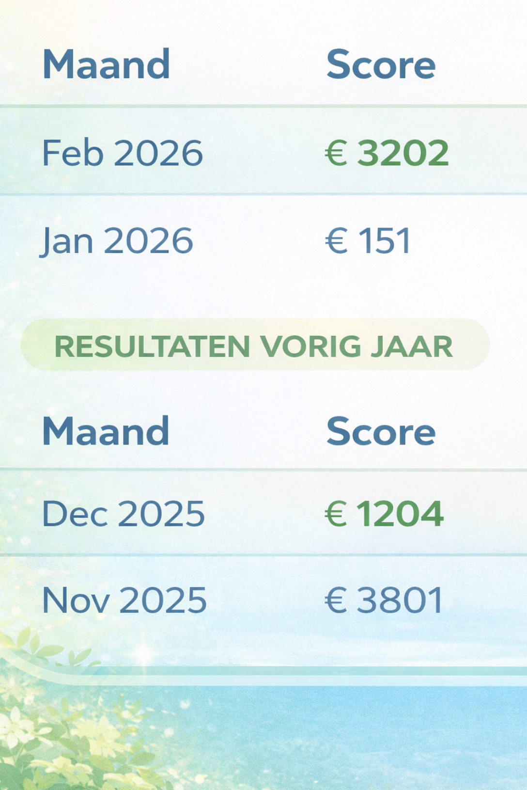 Overzicht resultaat dit jaar (2021):