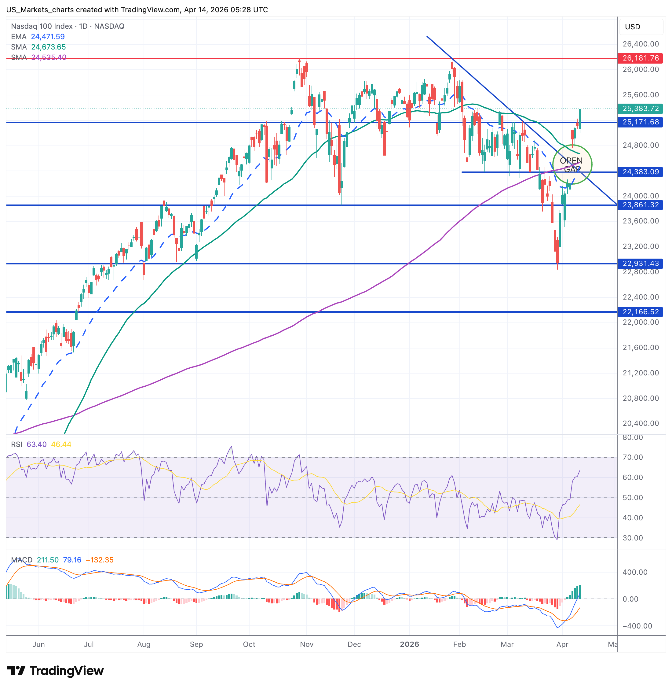 Bull: Nasdaq houdt 25.200 als steun en test later de 26.200, de pre-correctie weerstand.