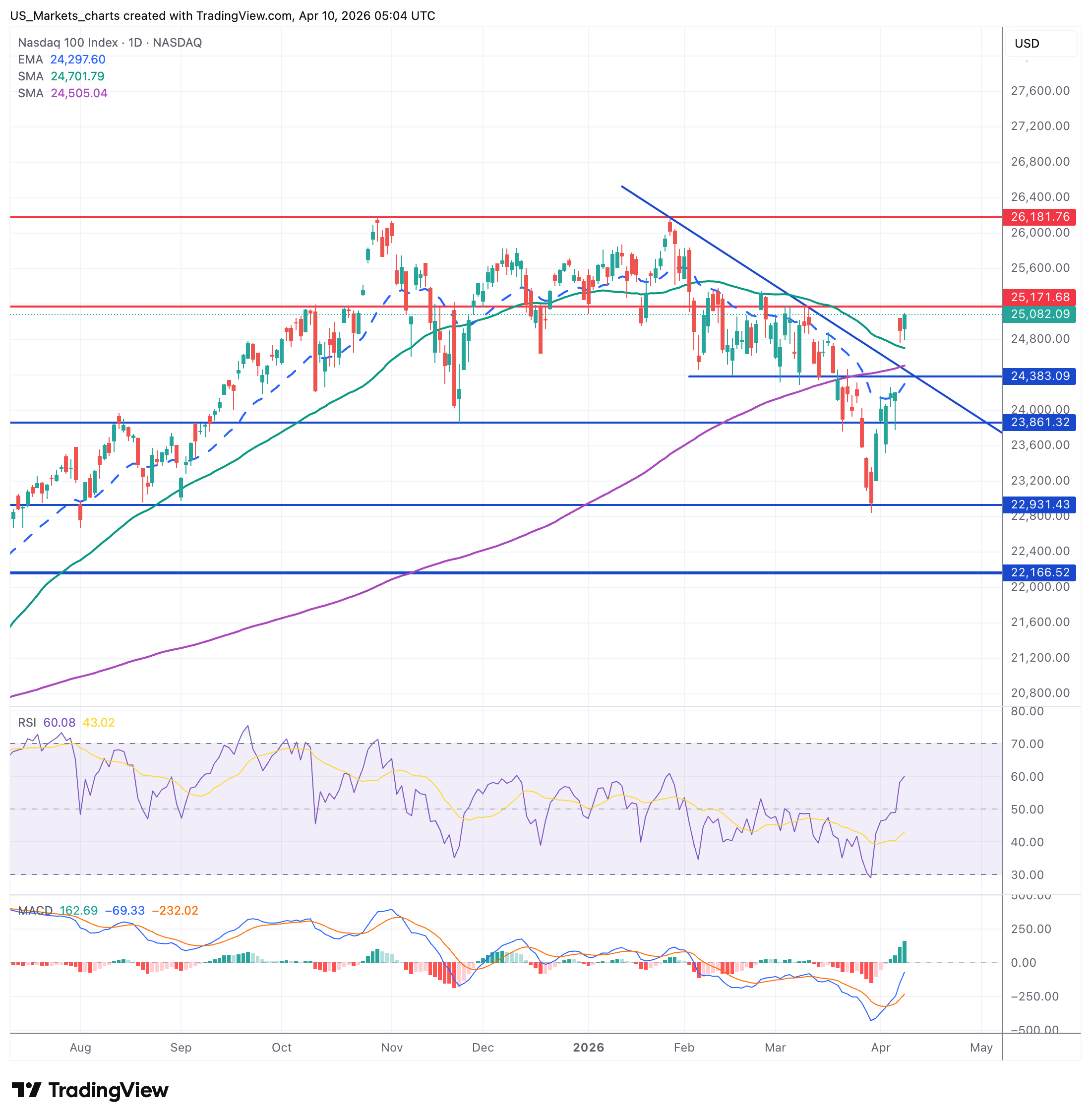 Bull: Nasdaq 100 doorbreekt 25.200, en beweegt verder richting de 26.200 en maakt een formeel einde aan de correctie.