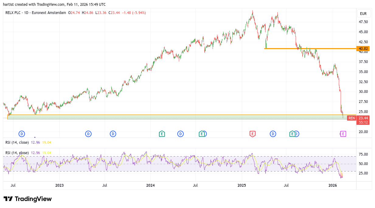 De andere drie verzoeken heb ik nog niet bekeken, maar hier kunnen we inderdaad het stempel Gevallen Engel op drukken. Na een eerdere dalingen levert Relx de afgelopen maand bijna dagelijks in.