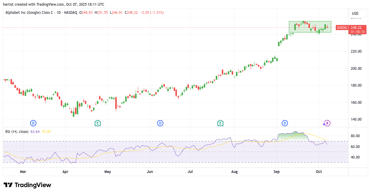 De grafiek is mooi, dit gedeelte van de chart laat een mooie stijging zien. Na de gap ging het nóg verder omhoog, maar nu is het aandeel in een zijwaartse beweging aanbeland. Zie de beweging binnen het groene blokje.