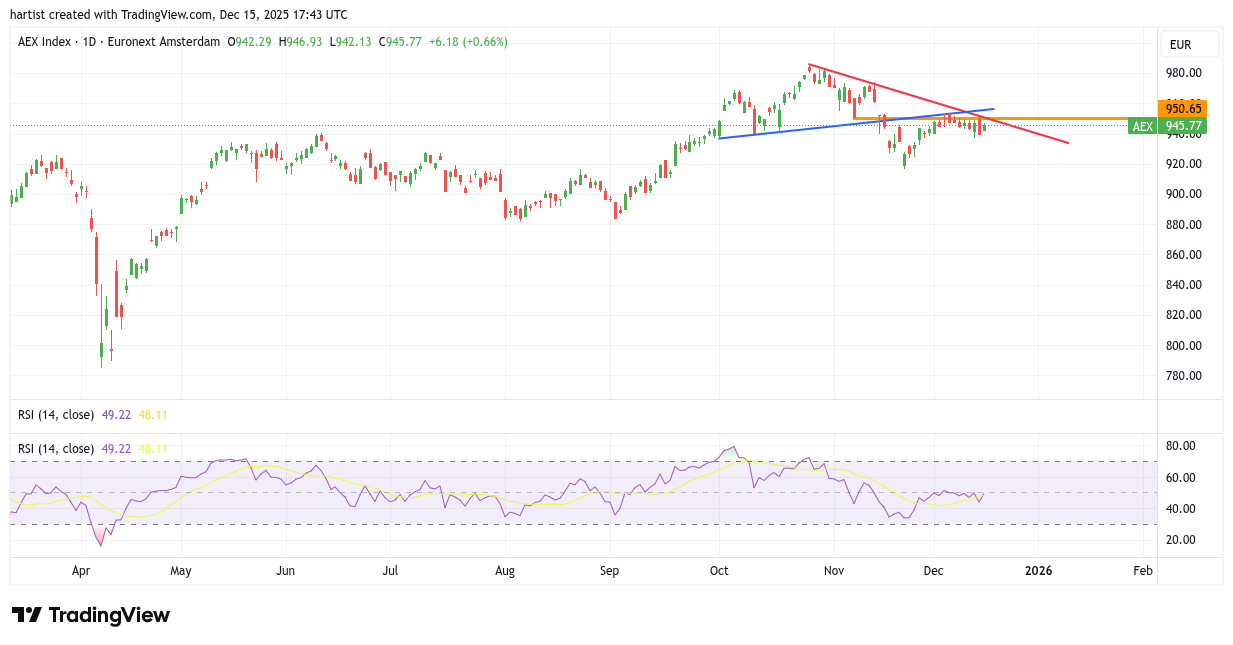 Vandaag is de koers van de AEX iets opgeveerd, maar staat nog steeds onder elk van de hierboven aangehaalde drie weerstanden. Blijf dus nog even voorzichtig met de AEX.
