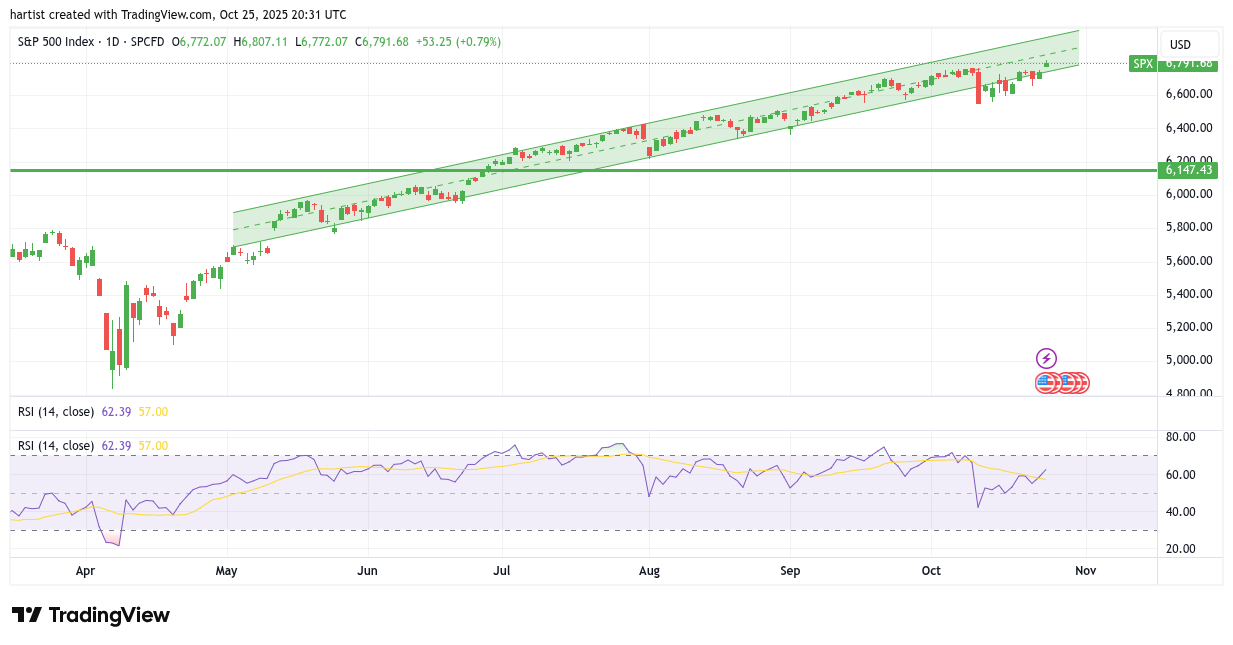 Ik heb even op u gewacht zodat ik nu de vraag kan stellen of u het verschil heeft gezien. Juist, bij de Nasdaq lag alleen de slotkoers van de grote rode candle onder het schitterende trendkanaal. Bij de S&P 500 telt u minimaal zes extra slotkoersen onder het net zo mooie stijgende trendkanaal. Des te indrukwekkender dat het de S&P ook gelukt is vrijdag weer binnen het stijgende trendkanaal te sluiten.