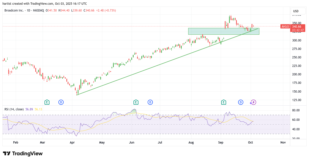 Braodcom heb ik nog niet zolang geleden ook geanalyseerd. Ik heb besloten geen nieuwe lijnen te tekenen en het te doen met de twee tekeningen: