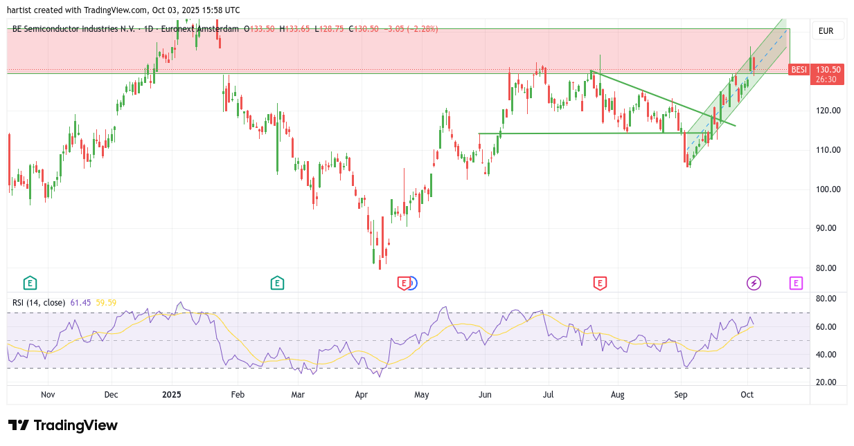 BESI is zich de laatste weken aan het oprichten. Ik kon zelfs iets van een stijgend trendkanaal tekenen. De koers is binnengedrongen in de rode weerstandzone. Ondanks de daling van vandaag wil het niet zeggen dat het niet verder omhoog kan. De koers zal dan wel binnen het stijgende trendkanaal moeten blijven…