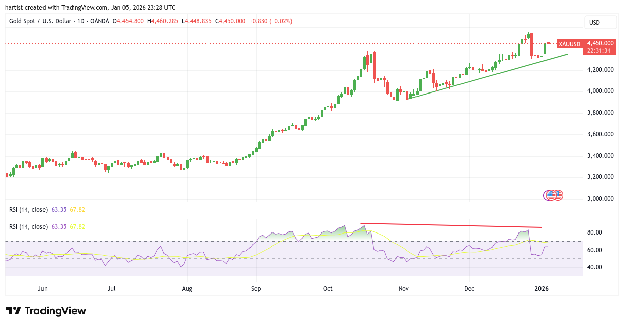 De negatieve divergentie was moeilijk. Je zou kunnen zeggen dat er een waarschuwing was, maar dan moest men 200% alert zijn. Anyway, de daling hebben we al gehad. Op dit moment is de groene stijgende trendlijn belangrijker. Goud zit in een uptrend en de groene lijn moet voor steun blijven zorgen.