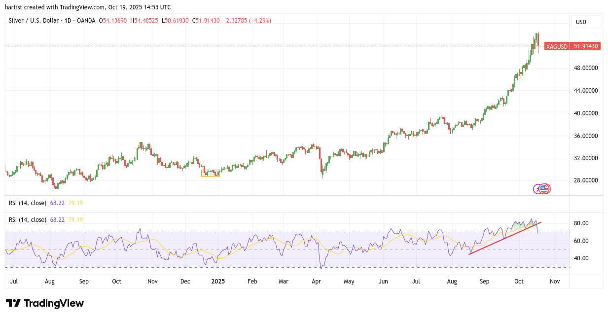 Valt er iets op aan de merken? Ja… de RSI. Deze indicator laat en een kleine negatieve divergentie zien en staat in overbought gebied. Zit u long, hanteer dan een trailing stop.
