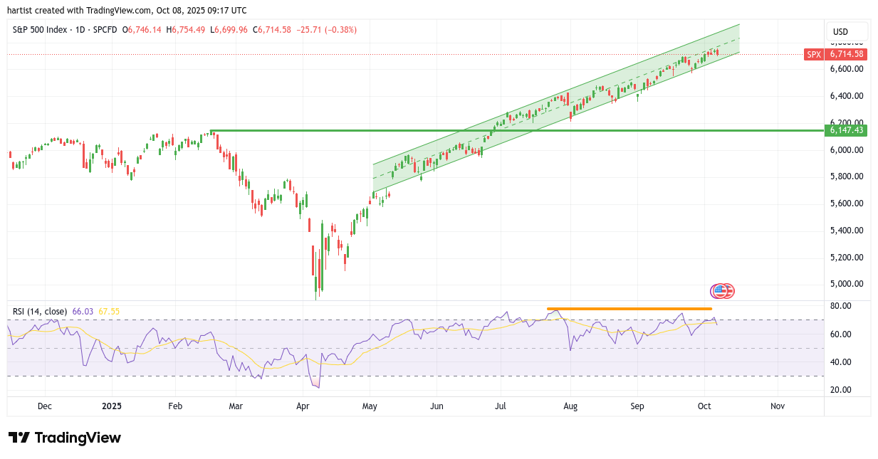 OK, eentje dan: een negatieve divergentie bij de RSI.