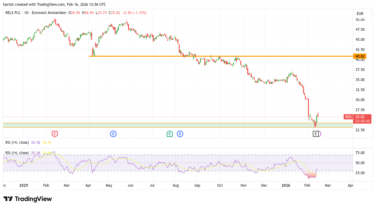 Ik ben het met u eens dat er nieuwe ontwikkelingen zijn en dat zou zeker mijn visie kunnen veranderen. Ik ga hier niet schrijven dat de daling ten einde is, maar het is wel zo dat de koers van Relx steun heeft gevonden op de onderzijde van de steunbalk. U ziet dat de koers daarna zelfs aardig is gestegen.