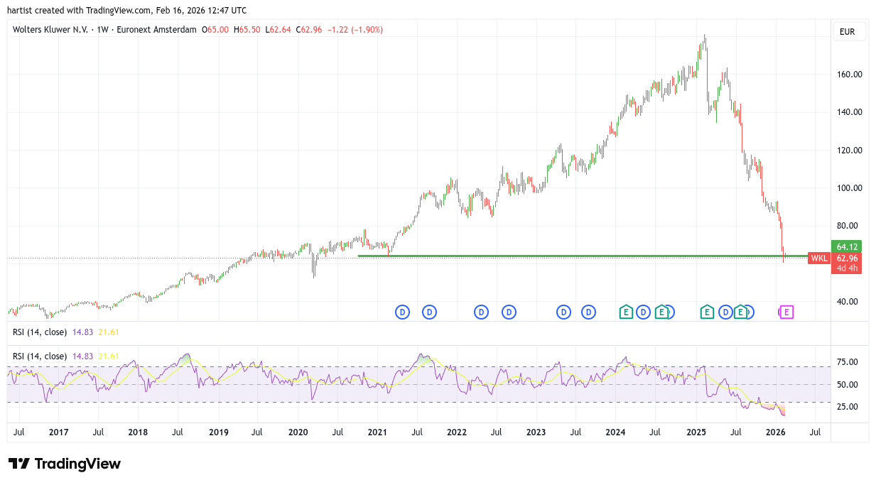Om te zien wat er gaande is heb ik bij Wokkels ook de weekgrafiek gehanteerd. U kunt goed zien met wat voor een enorme inleversessie Wolters Kluwer bezig is.