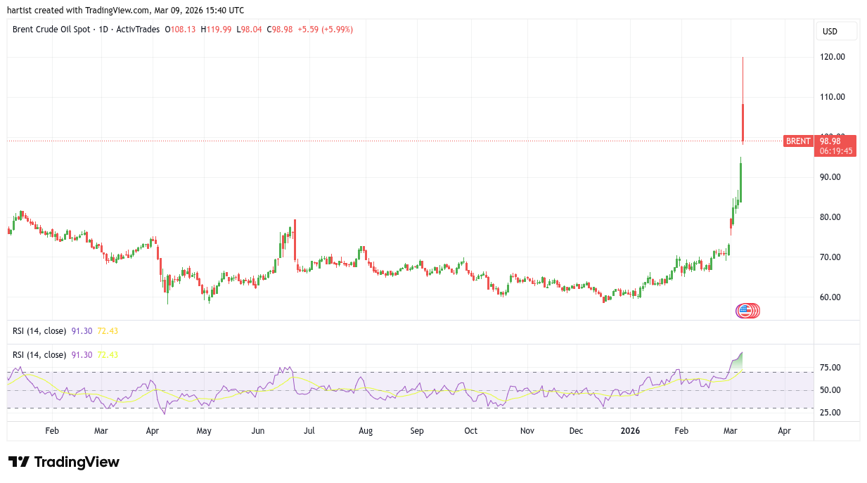 Ik kan hier weinig over kwijt, dit kan alle kanten op. Omhoog, maar de koers van Brent Crude Oil Spot kan zomaar verder inleveren.