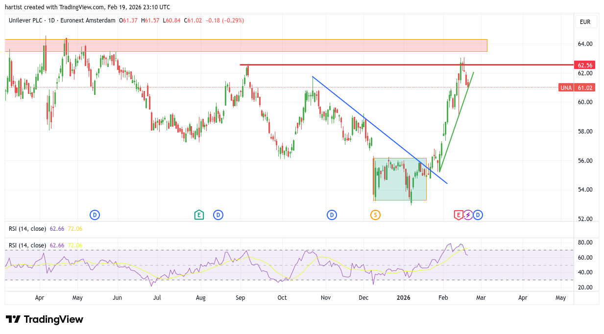 Vandaag een “Short” met twee grafieken: de AEX en Unilever.