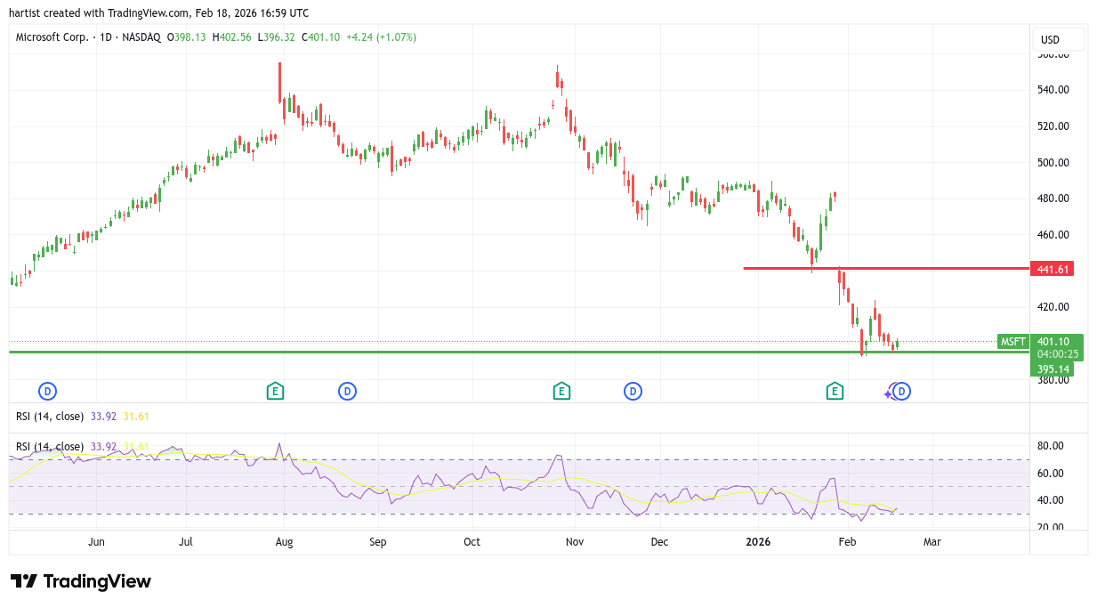 Gisteren zocht Microsoft voor de tweede maal de groene horizontale steun op. Het blijft dus een beetje kwakkelen. Zou het bedrijf filantroop en (mogelijk) feestjes van Epstein-bezoeker Gates missen? zou dat de reden van de daling zijn?