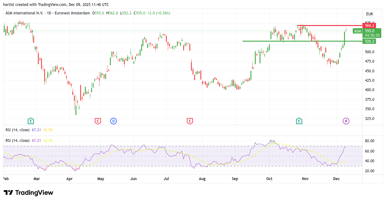 De laatste vijf, zes beursdagen is de koers enorm gestegen. Als u de rit heeft meegemaakt: gefeliciteerd!! Ik zou long blijven zitten, waarbij ik de kans groter acht dat we eerst iets dalen. Gebruik dan ook een trailing stop. De rode lijn is de weerstand. Daarboven kunnen er gekke dingen gebeuren.